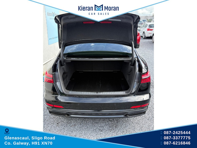 BLACK EDITION S-LINE AUTO!!!!! Stunning Audi A6 S-Line Black Edition in stock and now for sale. This amazing car offers comfort, space and style with economical performance and reliability that Audi is known for. Finished in Shwarts Black with 19" Audi Diamond Alloy Wheels, this car comes with the S-Line Body Design, an Automatic Gearbox, Parking Sensors Front and Rear, Reversing Camera, Electric Folding/Heated Mirrors, Electric Windows, Darkened Rear Windows, Auto Lights and Front Foglights. Features Inside Include Full S-line Styled Interior Half Leather/Alcantara Interior Heated Front Seats 2x Memory Settings on the Drivers Seat Leather S-Line Steering Wheel Multifunction Steering Wheel Paddle Shifters Bluetooth Handsfree Cruise Control Speed Limiter LED Dash Display Multiple Dash Display Options Adjustable Steering Column Push Button Start 2x Full LED Touch Screen Centre Consoles Apple CarPlay AndroidAuto Full Sat-Nav AM/FM Radio CD Player 2x USBC Slots Full Auto Air-Conditioning Dual Zone Control Auto Stop/Start Function Drive Mode Selection Auto Hold Function 2x Cup Holders 12v Plugs Centre Armrest Storage Isofix Rear Seats Rear Centre Armrest Spacious Boot Area This is a special Audi, driving perfectly along the road and in prestine condition both inside and outside. With both the S-line and Black Edition Styling, this is a real distinct, stylish looking car. A must see car to appreciate. For more information and all our stock visit www.kieranmorancars.ie Or Call 0872425444 0873377775 0876216846