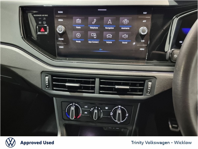TRINITY VOLKSWAGEN ARE EXCITED TO OFFER THIS STUNNING VOLKSWAGEN POLO FINISHED IN DEEP BLACK PEARLSCENT PAINTWORK AND IS COMPLEMENTED BY ALCANTARA/CLOTH SEATING. - PLEASE NOTE PRICE QUOTED INCLUDES €2000 MAXIMUM SCRAPPAGE ALLOWANCE - RETAIL PRICE OF CAR €25950 - IT HAS A BEAUTIFUL SPECIFICATION WHICH INCLUDES - 16'' GALVANO ALLOY WHEELS - LED HEAD LIGHTS - PARKING SENSORS FRONT AND REAR - REAR VIEW CAMERA - CLIMATIC CONTROL - MF LEATHER STEERING WHEEL - APPLE CAR PLAY - LANE ASSIST - FRONT ASSIST - HILL START ASSIST - ELECTRIC HEATED POWER FOLDING MIRRORS - CENTRE ARM REST FRONT AND REAR - USB C X 2 FRONT - USB C X1 REAR - LOW RATE FINANCE ARRANGED - DEPOSIT SECURES CAR - CONTACT A MEMBER OF OUR SALES TEAM TODAY ON 0404 25200 TO ARRANGE A TEST DRIVE - TRINITY VOLKSWAGEN DUBLIN ROAD WICKLOW. The vehicle information displayed above highlights the typical specification of the most recent model of this vehicle. We offer this information in good faith however cannot guarantee the accuracy of any specification/information supplied as the specification can vary. You must physically check the specification of the vehicle on site prior to purchase. The specification & features on this website do not form part of the buying contract.