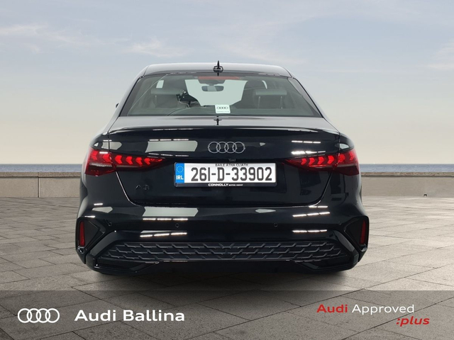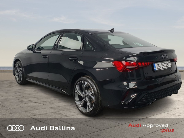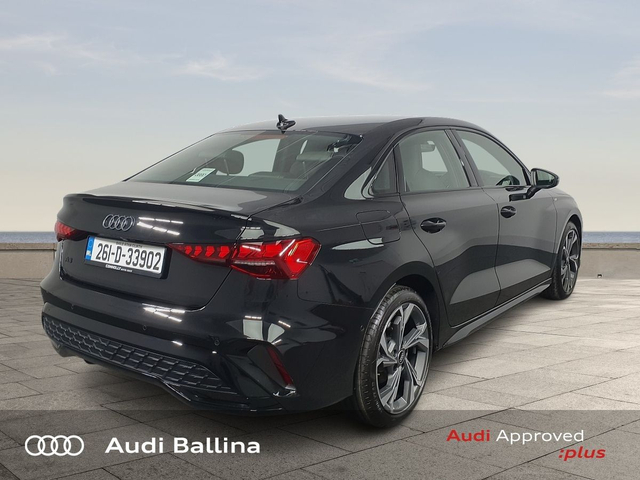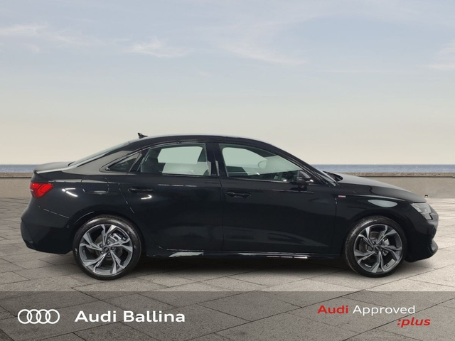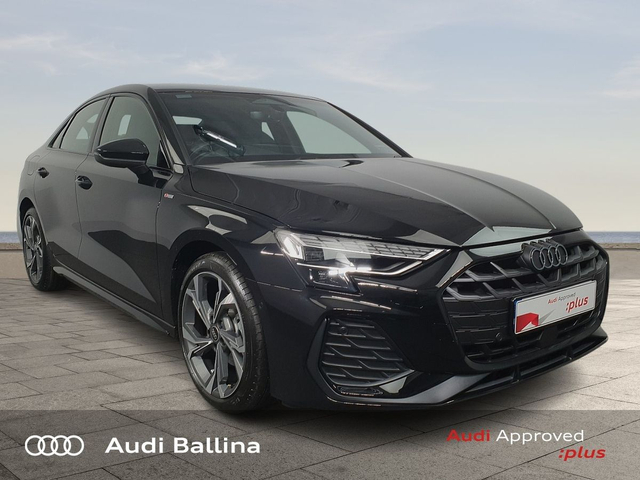 Now available at Connollys Audi Ballina, this stunning 2026 Audi A3 is finished in Mythos Black with a luxurious Black leather. Stylish, refined and packed with the latest technology, the Audi A3 S-Line delivers the perfect combination of performance, comfort and everyday practicality. This low-mileage example has been carefully inspected and prepared by our factory-trained technicians, offering excellent efficiency, smooth driving dynamics and premium interior quality expected from an Audi. With a full Audi service history, this vehicle is supplied through the Audi Approved :plus Programme, providing added reassurance and complete peace of mind for its next owner. If you’re looking for a premium, well-equipped and beautifully presented vehicle, this Audi is an excellent choice. ? Buying from Connolly’s Audi Ballina gives you peace of mind with: ? Fully inspected vehicles ? Minimum 12 Month Warranty ? Flexible finance packages available ? Trade-ins welcome ? Nationwide Delivery Available Available now at Connollys Audi Ballina ? Contact our sales team today to arrange a test drive or personalised video tour. • Audi Music Interface • Audi Sound System • Bluetooth Interface • Hands Free Kit • MMI Radio Plus • MMI SAT Nav • Mobile Device Interface (Media-In) • Mobile Phone Preparation-Bluetooth • Satelitte Navigation • Touchscreen Stereo • Audi Drive Select • Audi Stop/Start • Adaptive Cruise Control • Alloy Wheels • Black Styling Pack • Body Coloured Door Mirrors • High Gloss Black Grille • Metallic Paint • S-Line Body Styling • Space Saver Spare Wheel • Air Conditioning • Ambient Lighting • Armrest • Button Start-Stop • Climate Control • Door Sills with Aluminium Inlays • Dual Climate control • Electric Mirrors • Electric Windows • Front Footwell Illumination • Interior Lighting Pack • LED Interior Light Pack • 3 Spoke Sports Steering Wheel • Heated Seats • Leather Interior • Active Lane Assist • Child Locks • Daytime Running Lights • Front and Rear Park Assist • Locking Wheel Bolts • USB • Front and Rear Park Sensors • Voice control • Speed Limiter • Apple Carplay/Android Auto • USB C charging port • Alexa Control • Keyless Entry • Audi connect emergency call & service with Audi connect remote & control • Parking System Plus • USB C sharging ports • Audi Phone Box with wireless charging • Audi Smartphone Interface • Reverse Camera • USB charging ports