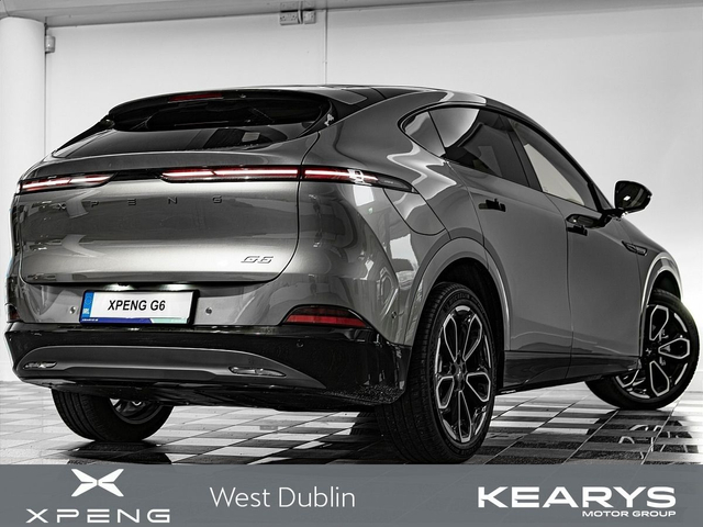 XPeng G6 RWD Coupe Standard Range in Graphite Grey Discover the XPeng G6 RWD Coupe Standard Range a breakthrough electric SUV that redefines what an EV can be. This is a vehicle that delivers cutting-edge performance, standout design, and high-end technology, packaged in a sleek coupe-inspired silhouette that commands attention in any environment. Electric Performance & Driving Range Powered by a rear-wheel drive electric powertrain producing around 190-kW (258-hp) and 440-Nm of torque, the G6 delivers responsive acceleration and confident performance. The Standard Range version uses a highly efficient battery pack with WLTP rated range of up to 435-km on a single charge, giving you the freedom to go farther without compromise. Charging capability is equally impressive with 800-V architecture and DC fast-charging up to approximately 215–240-kW, you can add hundreds of kilometres in minutes at compatible public chargers. Design, Space & Practicality The G6’s coupe-SUV design combines aerodynamic efficiency with standout presence. With a wheelbase near 2.89-m and sleek roofline, the exterior is striking while the interior delivers generous space. A 571-litre boot expands to over 1,300-litres with rear seats folded, making it one of the most practical EVs in its class for luggage, daily errands, or longer journeys. Premium Interior & Comfort Features Inside, the G6 places you in a modern, tech-rich environment with thoughtful touches throughout: • Dual high-resolution screens — a 10.2 driver display and a large 14.96 central infotainment screen powered by XPENG’s Xmart-OS. • Heated, ventilated and electrically-adjustable front seats with memory functions provide personalised comfort • Wireless phone charging points with cooling, premium upholstery choices, and high-quality materials elevate the entire cabin. • Excellent space across all five seats, with ample legroom and clever storage solutions. Advanced Technology & Safety The G6 isn’t just smart, it’s future-ready. XPENG’s extensive sensor suite and driver-assistance capabilities include multiple cameras, radars, and ultrasonic sensors for enhanced awareness and confidence. The SUV also offers intuitive connectivity features, over-the-air software updates, and integrated voice control, ensuring your G6 stays up to date and connected. Charging Intelligence & Usability With its advanced 800-V platform and silicon carbide components, the G6 supports some of the fastest charging rates in its segment, enabling rapid charging stops that fit into real-world travel routines. The XPeng G6 RWD Coupe Standard Range blends expressive design, impressive electric performance, and premium comfort into a complete EV package. It is engineered for everyday usability, weekend adventures, and modern connectivity all backed by class?leading technology. If you want range, style, technology, and performance in one electrified SUV — this is the car to own. Enquire now to secure yours. Enjoy Fantastic Offers at XPENG West Dublin! Location & Contact • Address: XPENG West Dublin, 24 Belgard Road, Tallaght, Dublin, Ireland, D24 AH74 • Phone: (01) 620 0608 • Website: www.kearys.ie/xpeng Opening Hours • Monday – Friday: 9:00 AM – 6:00 PM • Saturday: 10:00 AM – 5:00 PM • Open 6 Days a Week Why Choose XPENG West Dublin? • Latest Electric Innovation: Explore XPENG’s cutting-edge electric vehicles and smart technology. • Showroom & Online Experience: Visit our modern showroom or browse and enquire online. • Transparent Pricing: Straightforward pricing with no hidden costs. • Flexible Finance Options: Tailored finance solutions to suit your needs. • Nationwide Delivery: Convenient delivery available across Ireland (charges may apply). • Trade-In Welcome: Upgrade easily by trading in your current vehicle. • Trusted Dealer: Part of Ireland’s leading motor group with excellent customer support and nationwide availability. For more details or to explore the XPENG range, visit www.kearys.ie/xpeng or call us today at (01) 620 0608. • Adjustable seats • Adjustable steering column/wheel • Air Conditioning • Bluetooth Phone • Cruise Control • Electric Mirrors • Electric Windows • Electrically Adjustable Seats • Heated screen • Heated Seats • Height adjustable drivers seat • Media Connection • MP3 Connection • Multi-Function Steering Wheel • Outside temperature meter • Power Steering • Rear Electric Windows • USB • Car History Checked • Finance Available • History Checked • Nationwide Delivery • Rain sensor • Remainder of the Manufacturer Warranty • Stop and Start System • 3x3point rear seat belts • ABS • Alarm • Auto Handbrake • Auto High Beam Assist • Auto Lights and Wipers • Auto Wipers • Centralised locking • Child Locks • Driver Airbag • ESP • Front Parking Sensors • Immobilizer • ISO Fix • Multiple Airbags • Parking Assistance • Passenger Airbag • Rear Parking Sensors • Alloy Wheels • Android Auto • Apple Car Play