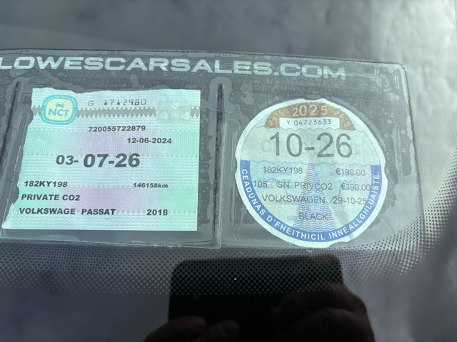 2018 (182) Volkswagen Passat Comfortline 1.6 TDI 120HP Irish car from new Nct tested until 07/2026 Taxed until 10/2026 Two remote keys Features - 18" Alloy wheels - Front fog lights - Reversing camera - Air con - Climate control - Cruise control - Bluetooth - Aux / USB - Parking sensors - Privacy glass - ISOfix Timing belt and water pump recently changed Supplied fully serviced complete with warranty and full vehicle history report Finance available - apply online on www.lowescarsales.com Contact us for more details on 087 4491387