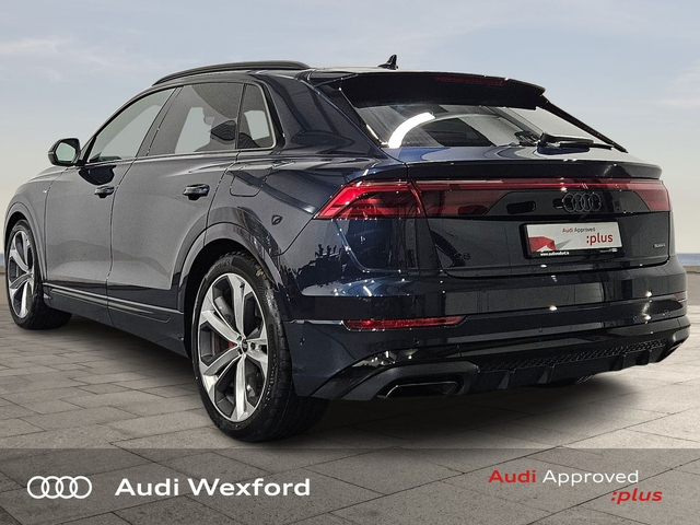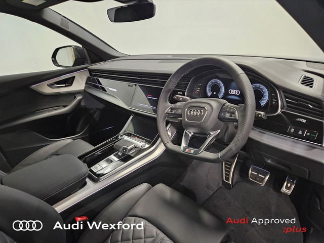 Audi Q8 Audi Q8 SUV Competition TFSI e quattro 360 kW tiptronic *NEW CAR AVAILABLE FOR IMMEDIATE DELIVERY* • Audi Music Interface • Bang & Olufsen • Bluetooth Interface • Hands Free Kit • Touchscreen Stereo • 4 Wheel Drive • Audi Drive Select • Audi Stop/Start • Cruise Control • Power Assisted Steering • Alloy Wheels • Black Styling Pack • Front Fog Lights • Headlight Washers • Metallic Paint • S-Line Body Styling • Tinted Windows • Air Conditioning • Ambient Lighting • Armrest • Automatic Air Conditioning • Button Start-Stop • Climate Control • Dual Climate control • Electric Windows • Front Footwell Illumination • Front/Rear Floor Mats • Multi-Function Steering Wheel • Privacy Glass • Rake/Reach Adjustable Steering Column • Split Fold Rear Seats • Upholstery and Seats • Front Sports Seats including Electric Lumbar Support • Heated Seats • Heated Seats Front & Rear • Leather Interior • Leather Steering Wheel • Lumbar Support • Memory Function Driver seat • ABS • Active Lane Assist • Alarm • Anti-Lock Brake System • Anti Theft System • Auto Lights and Wipers • Child Locks • Daytime Running Lights • Front Side Airbags with Curtain Airbags • High Beam Assist • Hill Descent Assist • Hill Hold Assist • Immobilizer • ISO Fix • Light and Rain Sensor • Multiple Airbags • Rear Park Assist • Reverse Camera • Reversing Sensors • USB • Front and Rear Park Sensors • Audi Connect • Audi Lane Assist • Audi Smartphone Interface • Audi Virtual Cockpit • Keyless Go • Pre sense city • Reverse Camera • USB charging ports