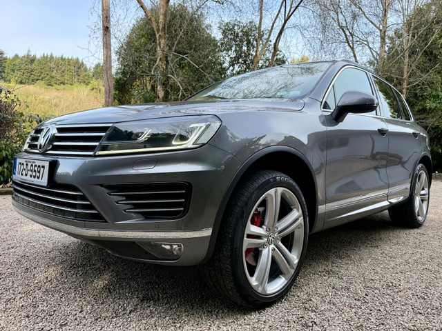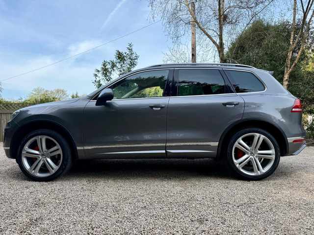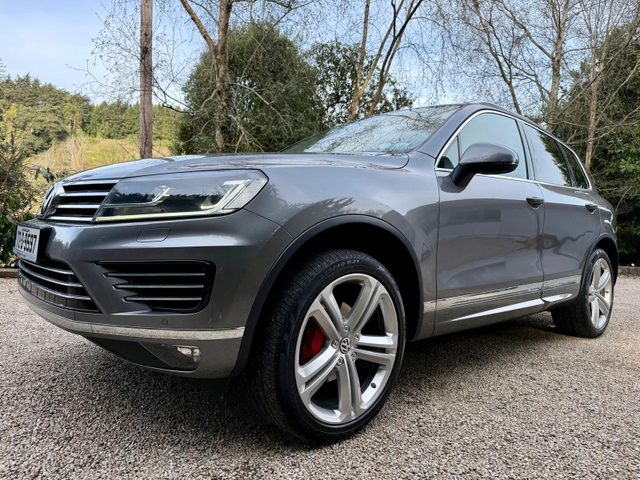 *5 Seat N1 BusinessNo Vat* In completely immaculate condition throughout, our Canyon Grey, full service history VW Touareg 3.0 TDI R Line 262 bhp 5 Seat N1 has an excellent specification to include R Line Bodystyling, 21 inch Alloy Wheel Upgrade Alloy Wheel Upgrade (with Red Brake Callioers), Heated Steering Wheel, Heated Electric Lumbar Support Seats with Driver Memory, Full Ivory Leather interior, Electric Tailgate, Reversing Camera, AutoHold, 4 Wheel Drive with Offroad Settings, Sat Nav, Electric Folding Mirrors, Bluetooth Audio Music Streaming and Phone Integration, Digital Climate Control, Parking Sensors Front and Rear and more. Annual road tax only 333 euro for business users. AA Approved and AA Roadside Assistance provided. Comprehensive warranty given. Trade-in welcome. Finance arranged at the most competitive rates available.