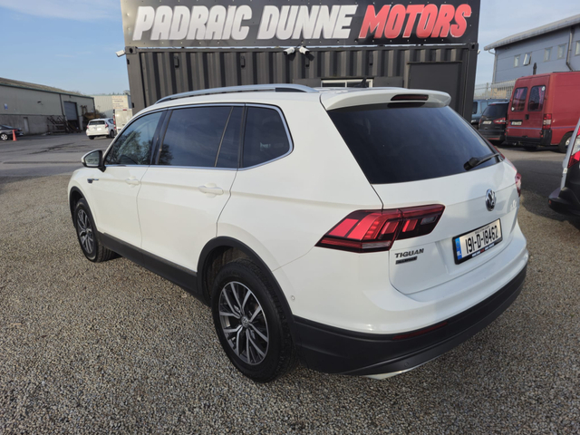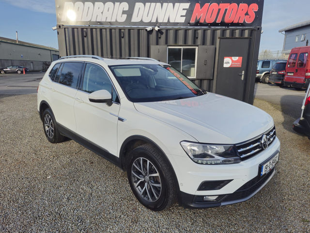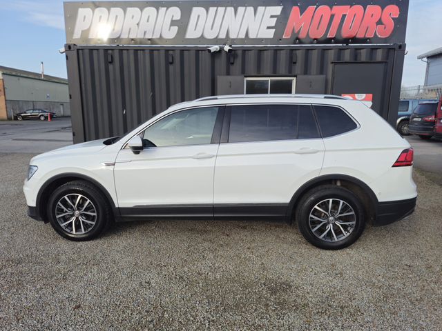 2019Volkswagen Tiguan All Space DSG Gearbox Sold with New Timing Belt & 4 New Tyres 2.0TDi 150BHP Viewing by Appointment only Deposit secures. Apply for Finance on Padraicdunnemotors.ie Nationwide Delivery Available Finished in a fantastic White colour Equipped with all the extras you need, Electric Windows Electric Mirrors Remote Central locking Heated Mirrors Bluetooth Large Screen Radio Dead Locks Stop Start Parking Sensors Cruise Control Air Conditioning Android Auto Apple Carplay Glass Roof Electric Tailgate Ambient Lighting As you can see in pictures the car is in great condition inside and out. Call Padraic on 0870967155 Office 0599117418 Trade in welcome. Check out all our cars on padraicdunnemotors.ie Located in the heart of Carlow town on the O'Brien Road in the Askea Business Park Just 50mins from the Red Cow Viewing by Appointment only Central Locking, Electric Windows, Airbag, Cruise Control, Fog Lamps, Privacy Glass, Centre Armrest, Multi-function steering wheel, Roof Rails, Traction Control, Metallic Paint, Parking Sensors, Bluetooth, EBD, Isofix, Apple Car Play, Android Auto, Active Safety Braking / City Brake / Collision Alert, Stop/Start Button, External Devices Connectivity, Cup holders, Remote boot/hatch/rear door release, Stability control