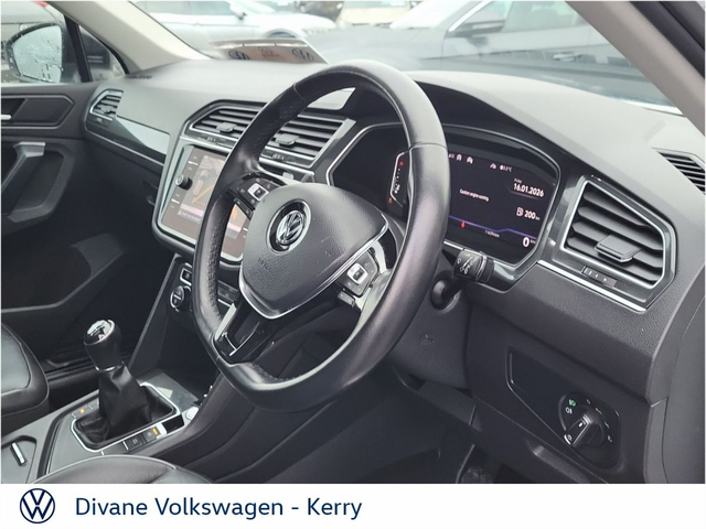 VOLKSWAGEN TIGUAN R LINE 2.0TDI 150BHP BLACK STYLE PACK LEATHER INTERIOR SUNROOF NEW NCT • Air conditioning • Lane change assist • Climate control • Central locking • Cruise control • Daytime running lights • Driver-side airbag • ABS • Dual zone climate control • Android Auto • Bluetooth • USB connection (front) • Immobilizer • Adaptive cruise control • Electric handbrake • Passenger-side airbag • Auto lights (dusk sensor) • Hill hold assist • Parking assistance • Multi zone climate control • Ambient lighting • Apple CarPlay • Emergency brake assist • Radio • Traction control • Lane departure warning • Tyre pressure monitor • Front parking sensors • Start-stop system • Traffic sign recognition • Voice control • Rain sensor • 12v power outlet • Keyless entry • Lumbar support • Armrest • Touch screen display • Rear parking sensors • Side airbag • Spoiler • Digital instrument panel • Parking camera • Anti collision system • Remote central locking • Electric side mirrors • Electric windows • Electrically adjustable seats • Heated seats • Navigation system • Seat belt warning • Multi-function steering wheel • Alloy wheels • Self-steering parking • Leather steering wheel • LED headlights • Isofix • Remote boot release • Stability control • Roof rails • Speed limiter • Emergency tyre repair kit • Leather interior