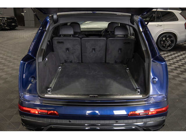 2023 (231) Audi Q7 S-Line 60 TFSIe Competition 17.9kWh Battery with an Electric-Only Range of up to 43km Finished in Navarra Blue Metallic with Black Leather Interior - 22” Gloss Black Alloy Wheels - Adaptive Air Suspension - Heated, Electric, Folding Mirrors - Heated, Electric Front Seats with Lumbar Support - Memory Driver Seat - Leather Multifunctional Steering Wheel with Paddle Shift - Cruise Control - Virtual Cockpit - Wide Touchscreen Infotainment System - Satellite Navigation - Bluetooth & USB Connectivity - Apple CarPlay & Android Auto - Reverse Camera - Front & Rear Parking Sensors - Air Conditioning - Dual Zone Climate Control - Selectable Drive Mode - Hill Descent Control - Electronic Handbrake - Auto Hold - Auto Stop/Start Function - Privacy Glass - Auto Lights - LED Headlights - LED Daytime Running Lights - LED Tail Lights - Auto Wipers - Motorised Tailgate - Folding Rear Seats - Isofix - Statutory Emergency Call System Warranty inclusive (options for extended warranty available) Finance available Trade ins are considered Indoor viewing in Naas, Co. Kildare Contact our sales team on 087-3855810 for more information or to arrange a test drive. Climate control, Dual zone climate control, Electrically adjustable seats, Electric boot, Electric handbrake, Heated seats, Lumbar support, Rain sensor, Split rear seats, Gear shift paddles, Android Auto, Apple CarPlay, Touch screen display, USB connection (front), Wifi, Cruise control, Hill hold assist, Navigation system, Parking camera, Front parking sensors, Rear parking sensors, Remote boot release, Roof rails, Speed limiter, Start-stop system, Traffic sign recognition, Voice control, Parking assistance, Digital instrument panel, Alloy wheels, Leather interior, Leather steering wheel, Spoiler, Sports seats, Tinted windows, Ambient lighting, Auto lights (dusk sensor), Daytime running lights, High beam assist, LED headlights, Anti collision system, Alarm system, Emergency brake assist, Remote central locking, Immobilizer, Isofix, Lane departure warning, Tyre pressure monitor, Emergency tyre repair kit, 4WD, Sport suspension