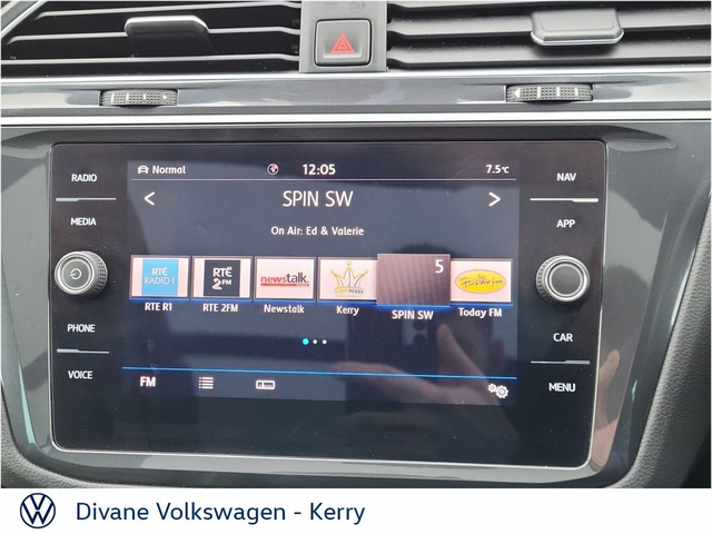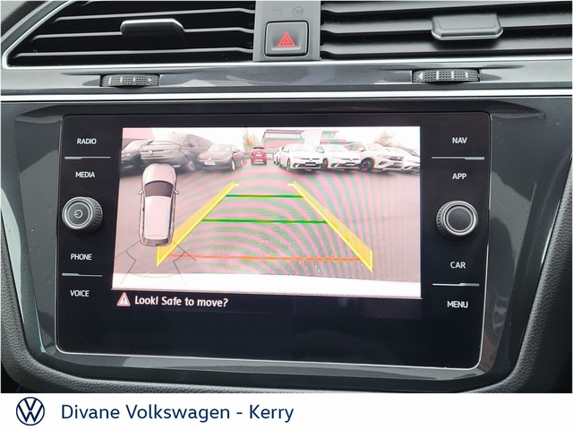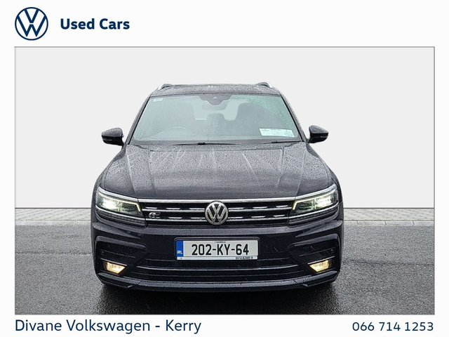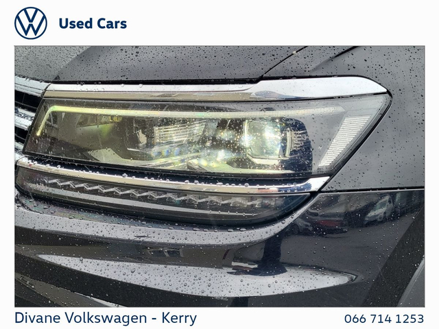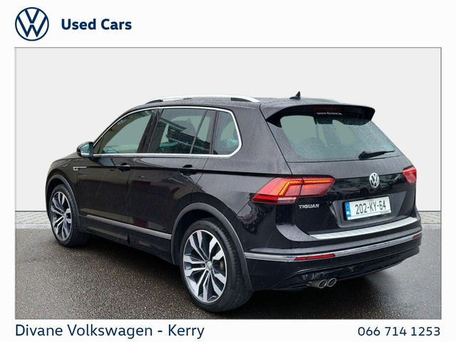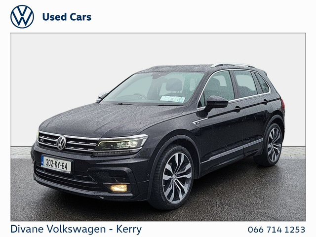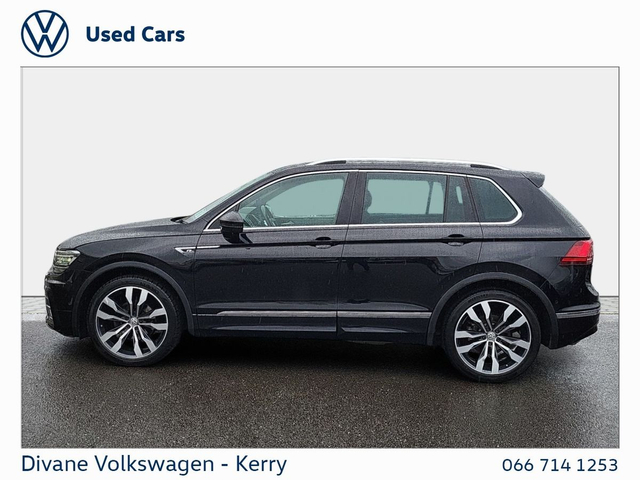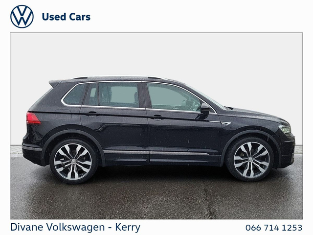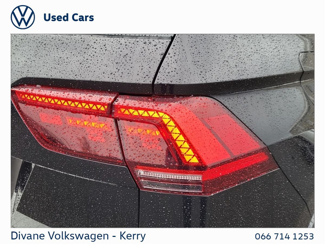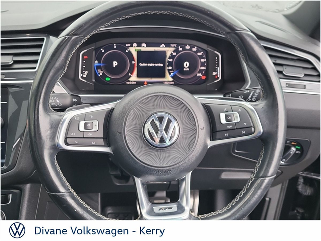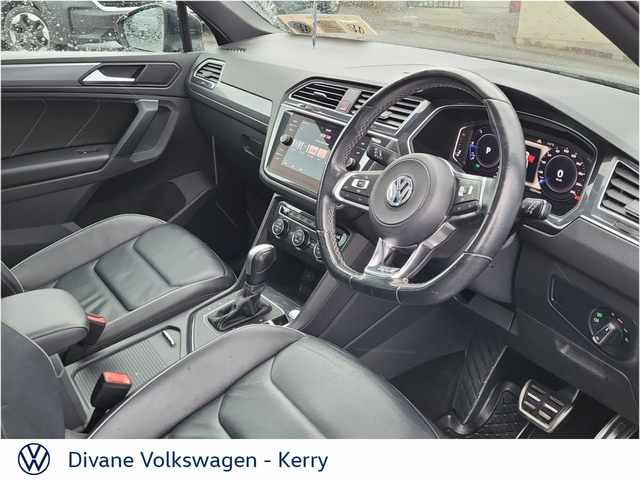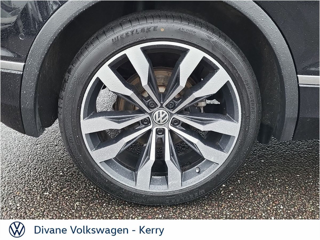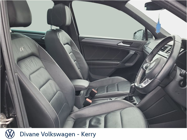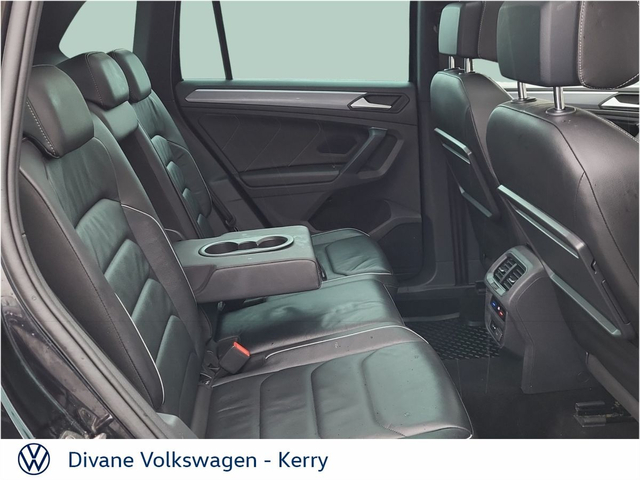 TIGUAN R-LINE 2.0 TDI AUTOMATIC 150 BHP IN DEEP BLACK PEARL EFFECT R LINE LEATHER INTERIOR UPGRADED IQ LIGHTS SUNROOF ELECTRIC BOOT NEW NCT €280 ROAD TAX. • Radio • 12v power outlet • Spoiler • ABS • Remote boot release • Immobilizer • Cruise control • Adaptive cruise control • Parking camera • Traction control • Digital instrument panel • Seat belt warning • Daytime running lights • Central locking • Roof rails • Side airbag • Leather interior • Armrest • Heated seats • Electrically adjustable seats • Lumbar support • Leather steering wheel • Multi-function steering wheel • Gear shift paddles • Air conditioning • Electric side mirrors • Tinted windows • Rain sensor • Electric windows • Navigation system • Stability control • Emergency brake assist • Tyre pressure monitor • Isofix • Voice control • Electric handbrake • Emergency tyre repair kit • Hill hold assist • Anti collision system • Bluetooth • Start-stop system • Lane departure warning • USB connection (front) • Parking assistance • Self-steering parking • Speed limiter • Touch screen display • Traffic sign recognition • Apple CarPlay • Android Auto • Lane change assist • Ambient lighting • Front parking sensors • Rear parking sensors • LED headlights • Auto lights (dusk sensor) • Remote central locking • Keyless entry • Driver-side airbag • Passenger-side airbag • Climate control • Dual zone climate control • Multi zone climate control • Alloy wheels • Full Service History • VW Bank Finance Available