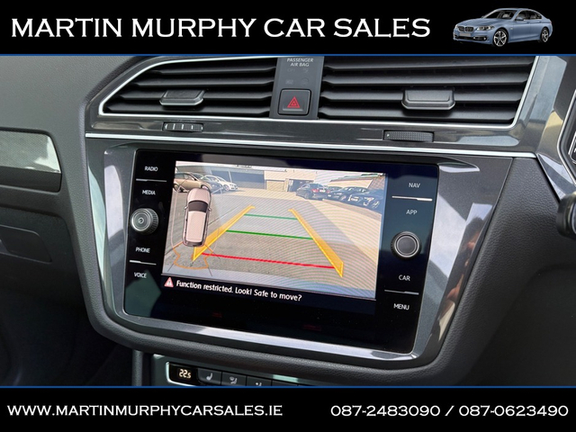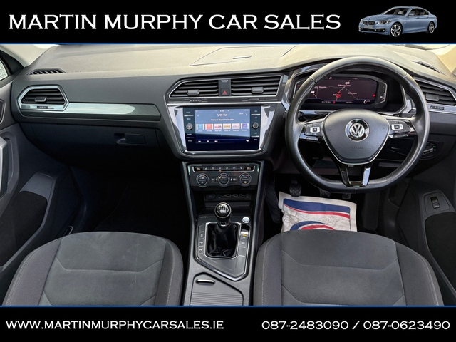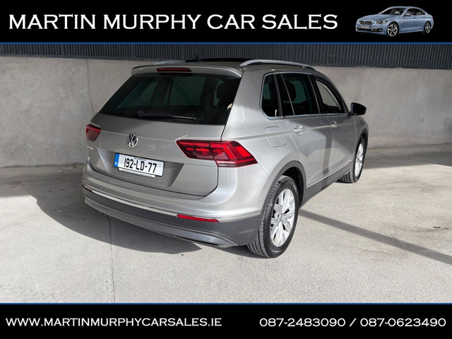 2019 VOLKSWAGEN TIGUAN HIGHLINE 2.0 TDI 150 BHP 6 SPEED - Irish supplied car from new - Two previous owner's - Finance available - Trade ins accepted - Dealer warranty - Satellite navigation - Reverse camera - Cruise control - Multi function steering wheel - Park assist - Front and rear parking sensors - Panoramic roof - Two keys - Contact sales for more info Central Locking, CD Player, Electric Windows, Airbag, Cruise Control, Fog Lamps, Privacy Glass, Centre Armrest, Multi-function steering wheel, Roof Rails, Satellite Navigation, Traction Control, Metallic Paint, Parking Sensors, Bluetooth, EBD, Isofix, Apple Car Play, Android Auto, Active Safety Braking / City Brake / Collision Alert, Stop/Start Button, External Devices Connectivity, Cup holders, Remote boot/hatch/rear door release, Stability control