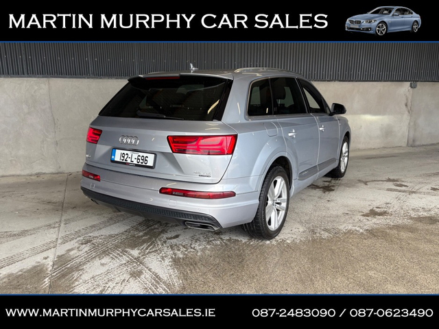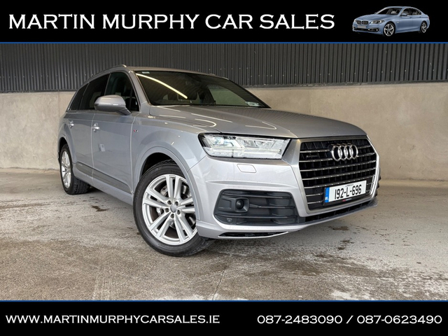 2019 AUDI Q7 S-LINE 3.0 TDI 231 BHP 7 SEATS AUTO Irish supplied car from new with two previous owners Finished in Florett Silver metallic with black leather interior - Finance available - Trade ins accepted - Dealer warranty - NCT tested until 07/2027 - Digital cockpit - Paddle shift - Full leather - Heated seats - Electric tailgate - 3rd row seating - Xenon headlights - Air con - Alloys