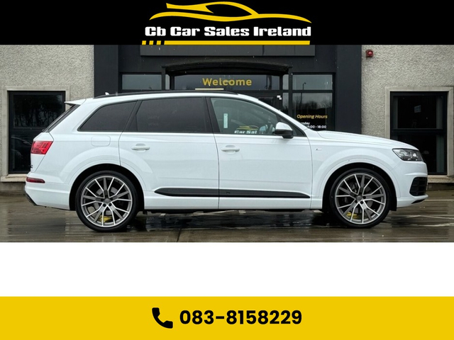 2019 AUDI Q7 S LINE QUATTRO 50 TDI V6 282 BHP 3.0 Diesel Model, Covered 79k miles, Finished in White, Key Features include: Adaptive Air Suspension 22'' Alloy wheels Included in price Black Edition Styling LED Headlights Front and Rear Parking sensors Reversing camera Half Leather S Line Interior Flat Bottom S Line Steering wheel Heated front seats Electric Adjustable front seats Dual Climate control Virtual cockpit / Sat Nav DAB Radio / Bluetooth AUDI Drive Mode Select Electric Folding 3rd Row seats ISOFIX Child seat Points And so much more.. Call today to arrange a test drive Tailored finance packages available to suit your needs Comprehensive warranty on all cars Trade ins welcome Delivery to North and South of Ireland if required MOT Expires: 22 February 2027 VRT: €15,969 VRT NOX: €500 Total price into ROI: €48,900
