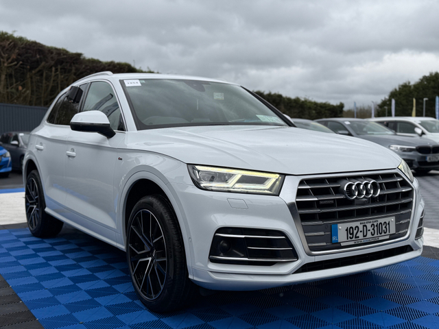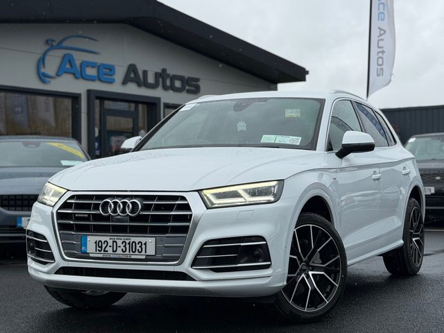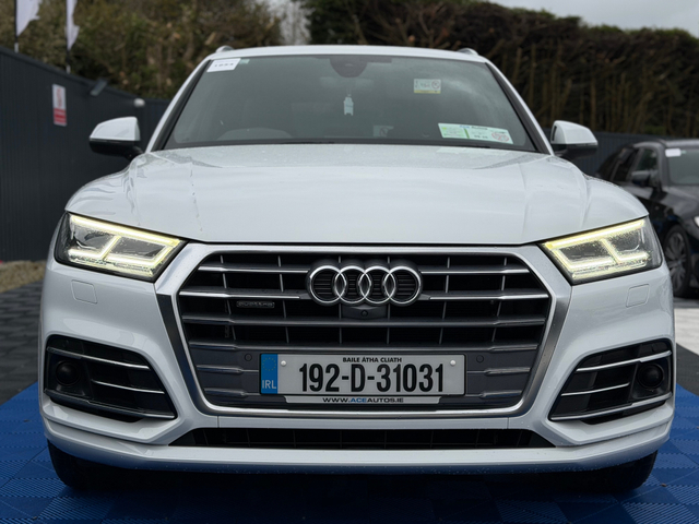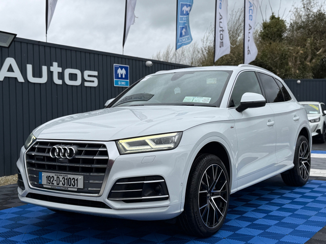 CAR NUMBER - 1954 CAR ID - 192D31031 Welcome to Ace Autos, an AA & SIMI Approved Dealership. We are one of Irelands leading providers of quality used Cars. All of our Cars are fully inspected by our AA Approved Mechanics and all vehicle's are Cartel History checked and greenlight verified. We also supply Auction sheets to verify Mileage / History on our Japanese Imports. Take a look at our new arrival, This 2019 AUDI Q5 S-LINE QUATTRO - 2.0L DIESEL - AUTO - 12M WARRANTY!! This car will be sold on Irish Plates, Fully Serviced, Valeted, NCT tested and has 12 Month warranty option available. **12 MONTH WARRANTY ONLY €295** We offer Competitive & Tailored Finance options. OFFICE 045- 579026 LOCATION OSBERSTOWN BUSINESS PARK, NAAS, CO KILDARE Please visit our website - "BUYING INFORMATION" When shopping at Ace Autos. WWW.ACEAUTOS.IE Features Include - 3 Month Warranty, 6 Month Warranty, 12 Month Warranty, Trade in accepted, Air Conditioning, Central Locking, Immaculate condition, Electric Windows, Airbag, Alarm, Alloy Wheels, Electric Mirrors, Electric Seats, Immobiliser, Leather Upholstery, Rear Spoiler, Privacy Glass, Heated Seats, Automatic Wipers, Automatic Lights, Centre Armrest, Luggage Cover, Multi-function steering wheel, Roof Rails, Climate Control, Satellite Navigation, Traction Control, Metallic Paint, Multiple Air Bags, Anti-Theft System, Parking Sensors, Bluetooth, Remote Central Locking, EBD, Isofix, Roadside assistance, History Checked, Finance Checked, Keyless Entry, Heated Front Seats, Heated Rear Seats, Reversing Camera, Wireless Smartphone Control, Active Safety Braking / City Brake / Collision Alert, Stop/Start Button, Touch Screen Media Control, Drive Mode Selector, Dual Zone Climate Control, Daytime Running Lights, External Devices Connectivity, Cup holders, Remote boot/hatch/rear door release, Stability control