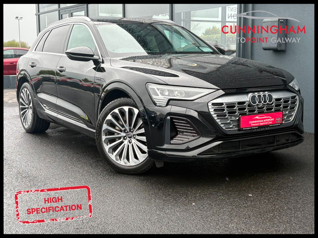 2024 (241D) Audi Q8 e-tron 50 S Line Black Edition in Mythos black metallic with Black full leather interior. With a 89.0kWh (usable) battery this car boasts a Real-world Range of 435km (WLTP 510km)* Very high specification example with features including Adaptive air suspension - Head-up display - Bang & Olufsen 3D Premium sound system - Audi virtual cockpit - Matrix LED headlights with dynamic light sequencing - MMI navigation plus with MMI touch response - 21-inch Alloy wheels, 15-spoke style in Graphite Grey - 360-degree cameras - Park Assist package with park assist plus - Audi connect Navigation & Infotainment - Audi app store and smartphone interface - Dark tinted sun protection glass - Ambient lighting package plus - Traffic sign recognition - Double charging ports - 22 kw on-board charger (AC) - 155 kw on-board charger (DC). This car can be reserved on our website for 48 hours allowing to time to travel and see the car with the assurance that the car will not be sold in the interim. Reservation fee is refundable if no deal is concluded or if you do not manage to come within the 48-hours. All cars are advertised subject to prior sale. Our website is (www.)auto-point.ie or search Cunningham Autopoint Galway. This car will be fully serviced prior to sale and comes complete with a 2 year / 40,000 overall vehicle warranty in addition to the balance of its manufacturers EV battery warranty to 10.02.2032 or 160,000km, whichever comes sooner. *Real world range is quoted from (www.)ev-database.org, an independent EV range monitoring website. The estimated range of any EV will depend on average speed, type of usage (i.e. mostly urban/semi-urban versus higher speed, long distance usage) in addition to other uncontrollable factors such as weather and route conditions. To discuss this car further please call into our showroom, phone us on 091 383000 or send us an online enquiry - You can also reserve this car for 48 hours on our website - Due to fast stock turnaround we recommend phoning in advance of travelling to check if the car of your choice is available - We are an independently owned and operated dealership and our highly experienced team have over 100 years of combined motor industry experience.