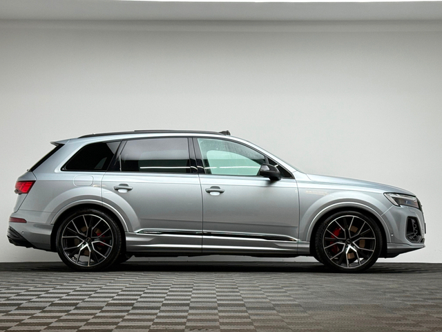 This 2024 / 242D Audi Q7 is finished in Satellite Silver metallic with a black Valcona leather interior, and comes equipped with: - Upgraded Sport Alloy Wheels - Black Styling Package Plus - S line Exterior Styling Package - Panoramic Glass Roof - Quattro All-Wheel Drive - Adaptive Air Suspension - Plug-in Hybrid - Regenerative Braking System - Red Brake Calipers - Matrix LED Headlights - LED Rear Lights Plus - Privacy Glass - Gloss Black Exterior Details - Ambient Lighting Package Plus - Heated Front Seats - Electric Front Seats with Memory - Audi Connect Navigation & Infotainment - Virtual Cockpit - 360° Camera - Reversing Camera - Parking Sensors Front & Rear - ISOFIX Front & Rear - Power Folding, Heated Mirrors with Memory - Hands-Free Electric Tailgate - Lane Departure Warning - Keyless Entry & Start - Privacy Glass & Much More! Viewing is by appointment only. Trade ins are welcome. All vehicles come with a MotorCheck comprehensive car check. Competitive finance options available. Extended warranty is available. Please contact us on (01) 727 0489 or WhatsApp at 087 430 4637. Follow us on Facebook & Instagram @ MotorCorp! All UK registered vehicles will be delivered with a ROI registration number & ROI registration plates, the total VRT amount is included in the advertised price. While we aim to provide accurate and up-to-date specifications for the vehicle above, please be advised that they are based on our best understanding and available information. To ensure they meet your expectations, we recommend verifying and confirming the specifications during your viewing. Your satisfaction is our priority, so feel free to contact us with any questions or for more information. 4817 841 Bluetooth,Climate Control,Cruise Control,Electric Mirrors,Electric Seats,Electric Windows,Electronic handbrake,Heated Seats,Six speed transmission,Sports Seats,Sun blinds,Sunroof,Air Conditioning,Alarm,Anti-Theft System,Keyless Entry,Parking Sensors,Rain Sensors,Xenon Lights,Brake Assist System,Alloy Wheels,Metallic Paint,Privacy Glass,All-Leather Seats,Apple CarPlay,Heated Front Seats,Motorised Tailgate,Sat Nav,Stop/Start Button,Touch Screen Infotainment System,Adaptive Cruise Control,Automatic Lights,Automatic Wipers,Front Parking Sensors,Hill-Start Assist,Isofix Points,Reversing Camera,Panoramic Sunroof,Rear Parking Sensors,Roof Rails,Power Folding Mirrors,Heated Front Windscreen,Cup Holders