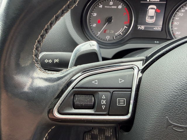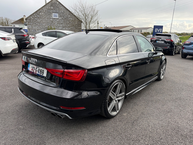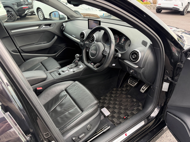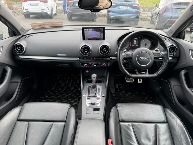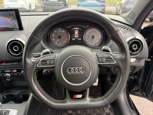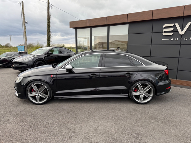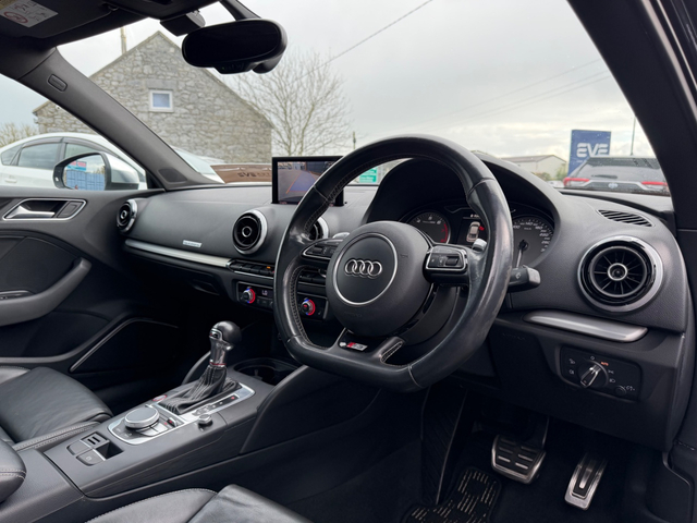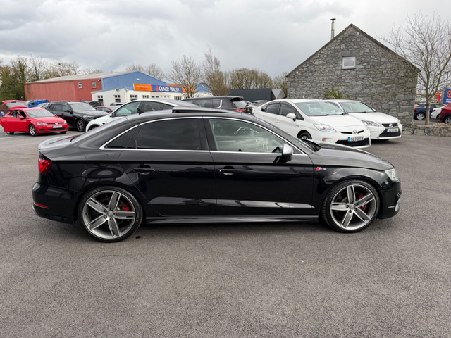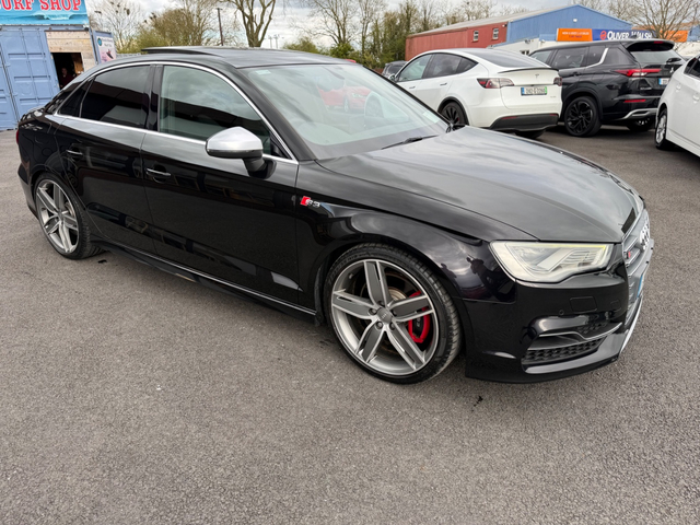 Here we have an “as new” Audi S3 saloon, boasting over 300 BHP which is laid down to all four wheels, this car has true performance, exceptional handling and genuine comfort packed into an extremely modern and desirable looking luxury vehicle. With such small kilometres it still has its “new car feel” and to keep it that way it comes fully checked over and detailed to the highest standard by our in house valet team. Exterior ceramic coat available if desired. It is the Top spec model, with all the right extras including: Retractable Panoramic sun roof Bang and Olufsen Sound system Upgraded 19” diamond cut alloys with wheel spacers Full leather interior Electric heated semi bucket front seats with Embossed S3 stamp Audi Park assist Leather flat bottomed steering wheel with S3 Badge Quad Exhausts Rear diffuser Audi MMi interface On board Lap timer Cruise control Lane departure assist Reversing camera with guidelines Automatic Projector Xenon lights Smart Keyless entry Height adjustable seats Dual Climate control Satin chrome side mirrors Privacy glass Push button start It is a stunning example of a car that will do 0-100kph in just 4.4 seconds (faster than an S4) whilst at the same time feels comfortable and economical enough to be your daily driver. Come and see for yourself why this car is in such high demand. Due to very limited supply of these cars, especially in this condition, viewing is strictly by appointment — call to book. Thank you. Retail/Trade in price: €25,900