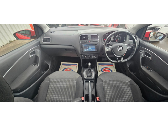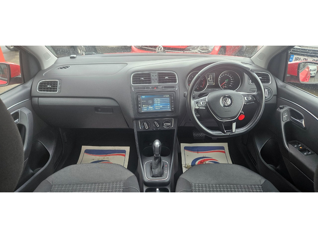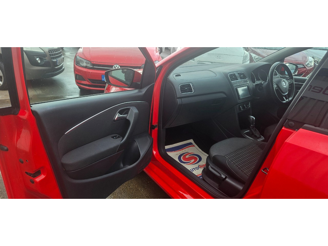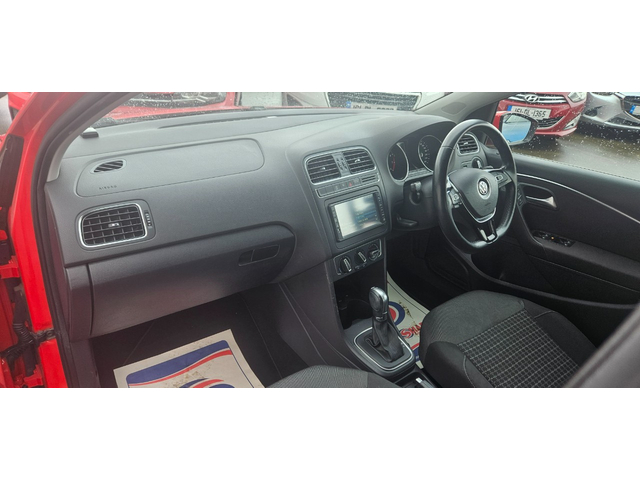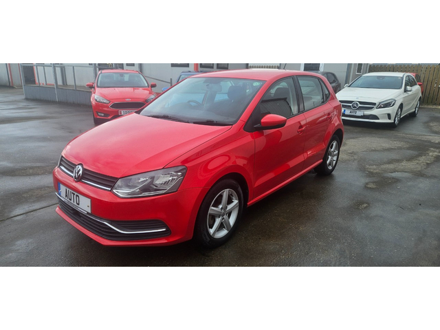 2015 Volkswagen Polo automatic comfortline 1.2 tsi dsg finished in red.a 1 owner car from new with only 82,094kms/51mls warranted.great spec on this 1 with immobiliser multiple airbags abs pas remote central locking elec windows x 4 elec folding mirrors multi functional flat bottom steering wheel auto/tiptronic/paddleshift transmission traction control radio/cd/dvd/mp3/usb/aux/ipod cruise control traction control reverse camera air con manual handbrake touchscreen infotainment unit flipscreen radio/cd/mp3/dvd/sd bluetooth vehicle assists voice command c/c body upgraded 15'alloy wheels facelift model,really nice colour,has an annual road tax of only €190 with very low insurance group. extremely good condition throughout,looks and drives stunning price all in includes *vrt & nox charges paid with new irish plates fitted* *fully serviced & valeted* *new nct carried out* *6 month nationwide warranty* we have flexible finance packages available deliveries available throughout ireland deposit secures all vehicles call GARY ON 086-4010506 FOR MORE INFO OR VIEW ALL OUR STOCK WWW. MODERNMOTORS. IE Mountain Top Letterkenny Co,Donegal F92A8HK Central Locking, Electric Windows, Airbag, Fog Lamps, Privacy Glass, Multi-function steering wheel, Traction Control, Bluetooth, EBD, Isofix, Active Safety Braking / City Brake / Collision Alert, Stop/Start Button, External Devices Connectivity, Cup holders, Remote boot/hatch/rear door release, Stability control
