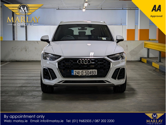 Fresh into stock we have this stunning Audi Q5 50 TFSIe S-Line, finished in eye catching Glacier White metallic. Featuring the best of both worlds, combining plug-in hybrid range of up to 60kms and a 2.0 litre four-cylinder turbocharged petrol engine. Combined, these produce 299hp and 450Nm of torque, mated to a 7-speed dual clutch DSG gearbox and permanent Quattro four wheel drive system. A well spec’d and fantactic condition example. Great spec including: - 20” diamond cut alloys - Matrix beam LED headlights and LED tail lights - Bang & Olufsen sound system - Virtual cockpit dash screen - Navigation system – High - Carplay/Android Auto - Wireless phone charger - Park assistant - Lane departure warning - Pre-sense city - Automatic headlights & wipers - Reversing camera - Front & rear parking sensors - 3 zone climate control - Rear privacy glass & much more As an AA Approved dealer all of our cars go through a rigorous 101-point inspection to ensure they meet the most exacting standards. Every car receives 12 months free AA roadside assistance as well as a minimum of 6 months warranty. You can rest assured you are in good hands. Trade-ins welcome and finance available.