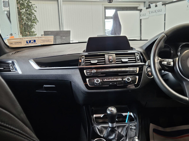 TRADE IN PRICE €15950 NEW INTO STOCK.181-BMW 1 SERIES M-SPORT EDITION 1.5 DIESEL 116 BHP. IN FANTASTIC CONDITION AND WITH MILEAGE OF 97.000 MILES (159,000 KMS-MOTORCHECK HISTORY REPORT VERIFIED) THIS VERY EYE CATCHING 1 SERIES COMES WITH EVERYTHING YOU WOULD EXPECT FROM A LUXURY CAR INC- ALLOYS,FOGS,CLIMATE CONTROL,WIDE SCREEN INFOTAIMENT SYSTEM W/BLUETOOTH,FULL LEATHER INTERIOR,PARKING SENSORS,CRUISE CONTROL,PRIVACY GLASS AND FINISHED IN BMW CARBON BLACK IT REALLY HAS BEEN METICULOUSLY MINDED AND IT HAS BEEN FULLY CHECKED OVER AND SERVICED BY OUR OWN MECHANIC AND COMES WITH A WARRANTY. *A STUNNING CAR TO LOOK AT AND DRIVE THAT HAS BEEN METICULOUSLY MINDED AND IS A CREDIT TO THE PREVIOUS OWNER WHO CLEARLY ADORED THE CAR* FOR MORE INFO CALL TONY 0876665151 FERGAL 0874403001 Climate control, Electrically adjustable seats, Rain sensor, USB connection (front), Hill hold assist, Navigation system, Remote boot release, Speed limiter, Start-stop system, Voice control, Digital instrument panel, Alloy wheels, Leather steering wheel, Sports seats, Tinted windows, Auto lights (dusk sensor), Daytime running lights, LED headlights, Alarm system, Emergency brake assist, Remote central locking, Immobilizer, Isofix, Tyre pressure monitor, Sport suspension